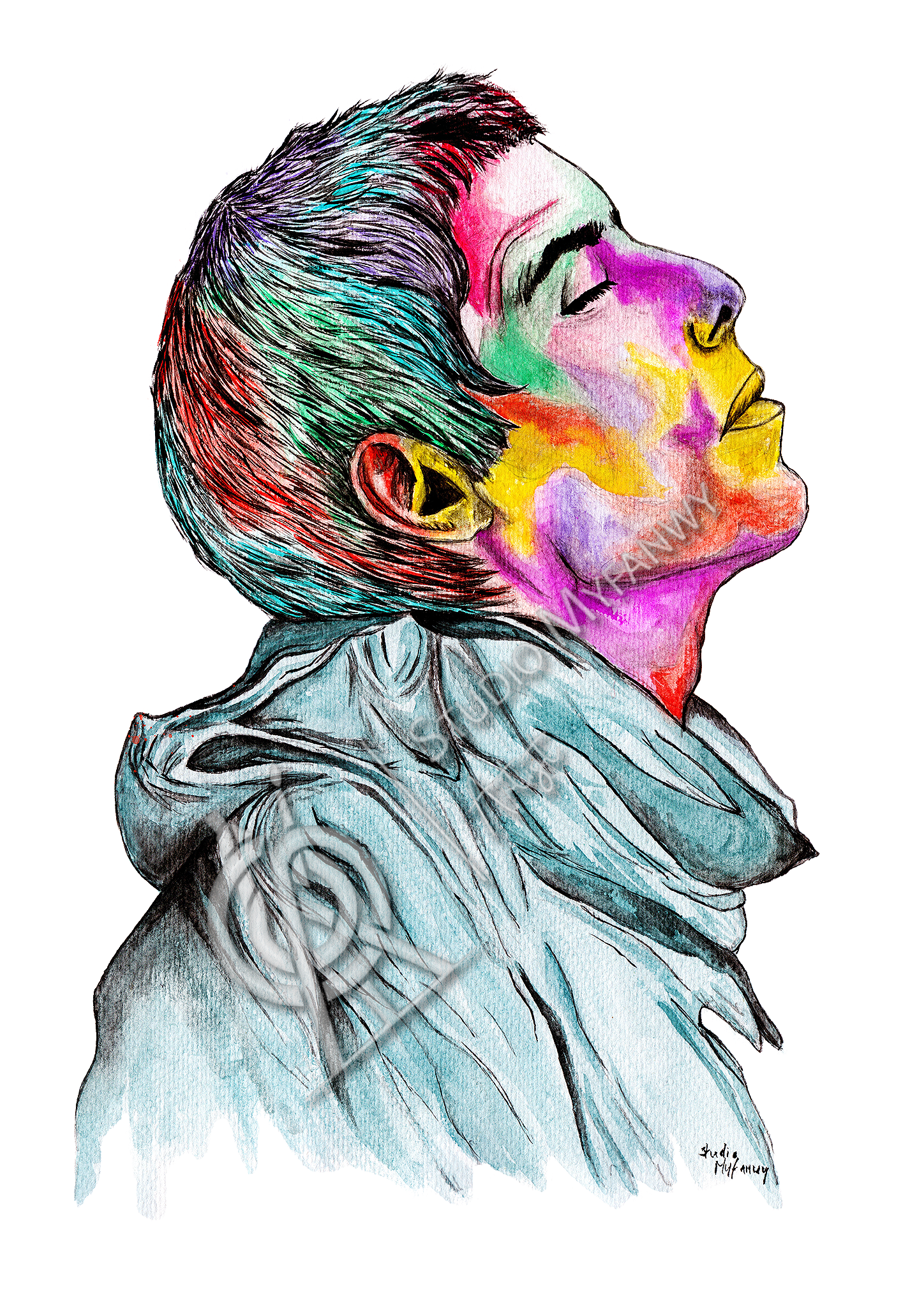 Let your walls rock out with this vibrant painting of Liam Gallagher. Add a pop of color and personality to any room with this colorful piece of art. Perfect for fans of the iconic frontman!