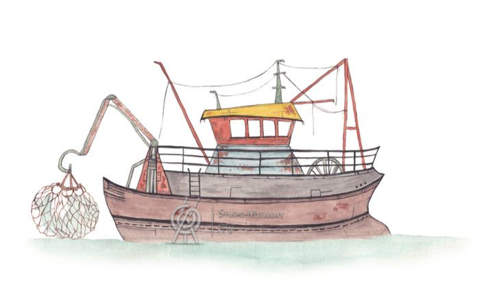 Set sail on a whimsical adventure with this Trawler art print! An illustration from the children's book Dannee the Dolphin. This illustration is sure to add a playful touch to any room in your home. Make a splash with this unique piece!